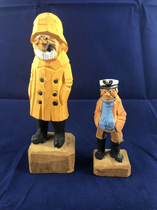 Title (ebay affiliate link): Pair Of Sailor Sea Captain Fisherman Figurines Wooden Nautical Hand Carved