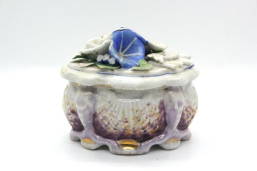 Antique Porcelain Staffordshire Seahell & Floral Fairing Trinket Box (AS-IS)