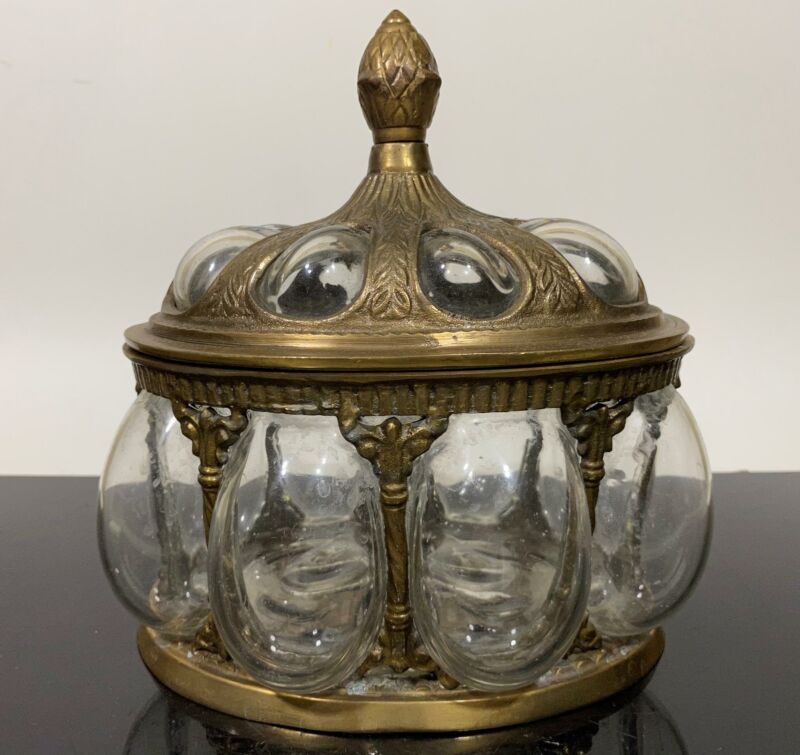 Title (ebay affiliate link): Vintage Footed Brass Blown Bubble Art Glass Covered Candy Dish Bowl