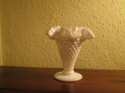 Fenton Hobnail Milk Glass Vase W/Crimped Edge! 4" high