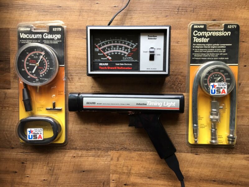 Title (ebay affiliate link): SEARS TUNE UP SET TIMING LIGHT VACUUM COMPRESSION GAUGE TACH DWELL VOLTMETER