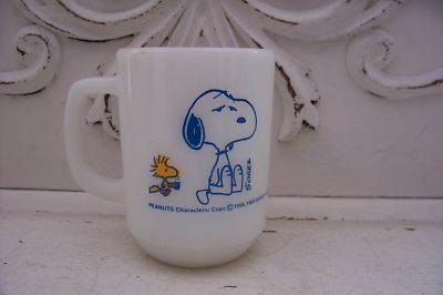 VTG FIRE KING MILKGLASS PEANUTS SNOOPY MUG COFFEE BREAK