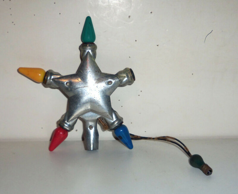 Vintage 5 Light Christmas Metal Star Tree Topper