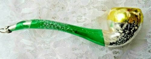 Vintage/Antique Mercury Glass Ornament - HORN PIPE? - GREEN, SILVER, GLITTER