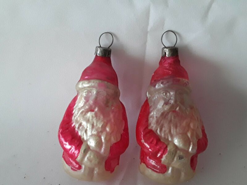 Vintage SANTA CLAUS Germany Glass Christmas Ornaments set of 2