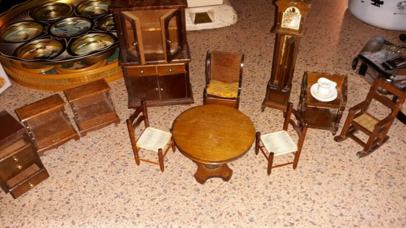 Title (ebay affiliate link): LOT 11 PIECES OF VINTAGE WOOD DOLLHOUSE FURNITURE GRANDFATHER CLOCK, TABLE,HUTCH
