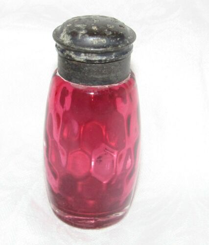 VICTORIAN SMALL CRANBERRY HONEYCOMB SALT SHAKER LATE 1800''S