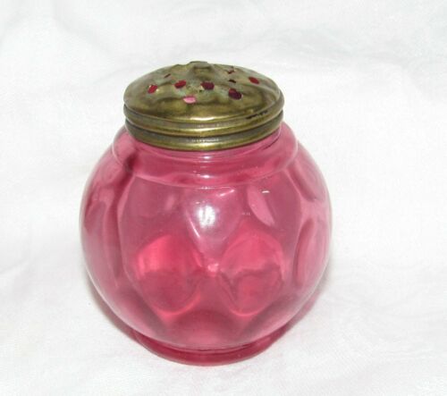 VICTORIAN ROUND CRANBERRY INVERTED THUMBPRINT SALT SHAKER LATE 1800''S