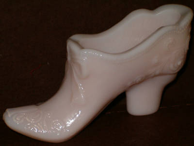 CROWN TUSCAN PINK MILK ART GLASS BOW SLIPPER SHOE BOOT