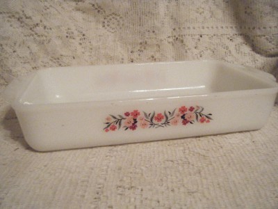 Vtg Fire-King Milk Glass Primrose Casserole/Baking Dish