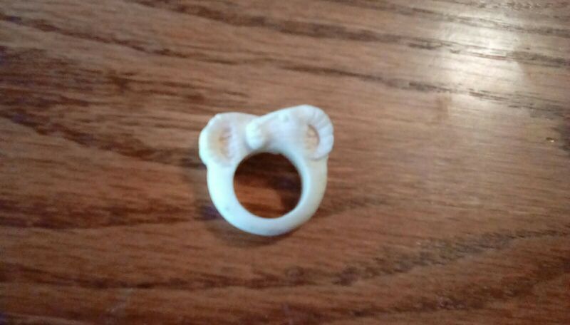 ANTIQUE AMAZING RAM CARVED BOVINE BONE Vtg RING