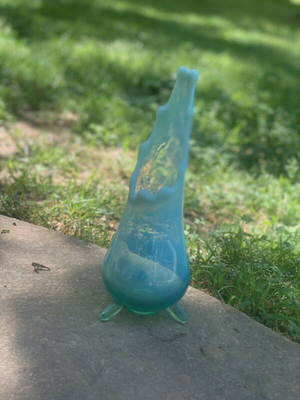 Mid Century Footed Swung Glass Vase Green Viking? 9.5â€
