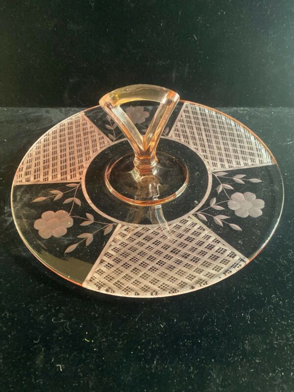 Title (ebay affiliate link): Pink Depression Glass With Etched Glass. Flower Decor And Weave Design