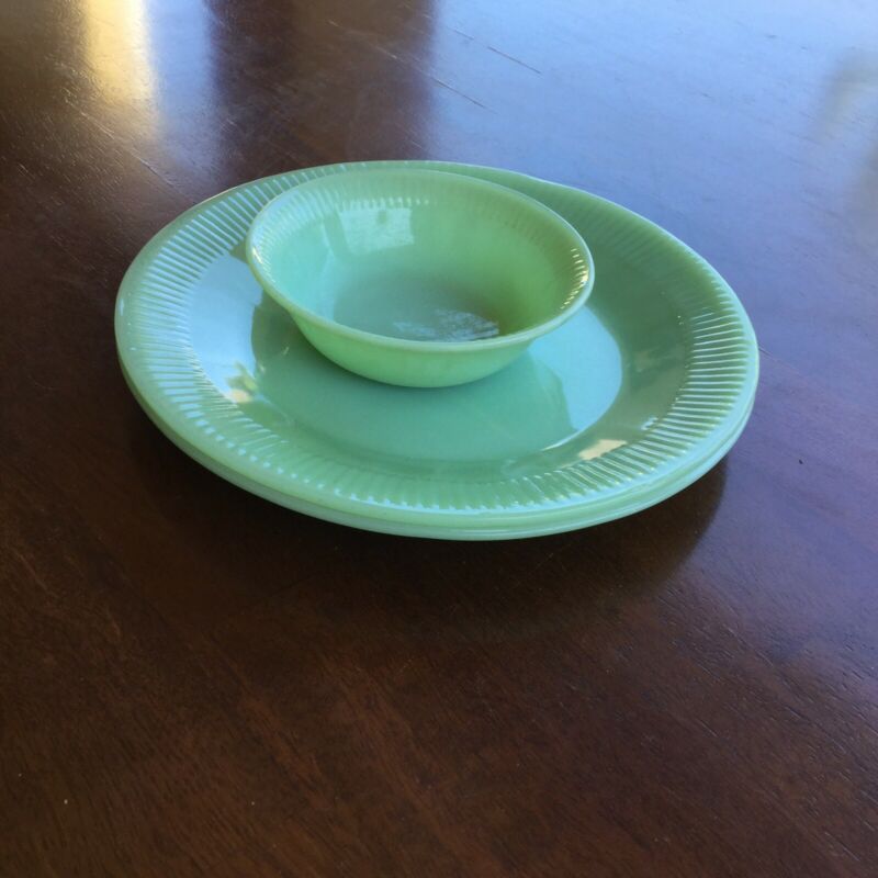 fire king jadeite 2 Dinner Plates 1 Berry Bowl