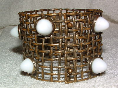 ODD VINTAGE ART DECO WHITE MILK GLASS BANGLE BRACELET