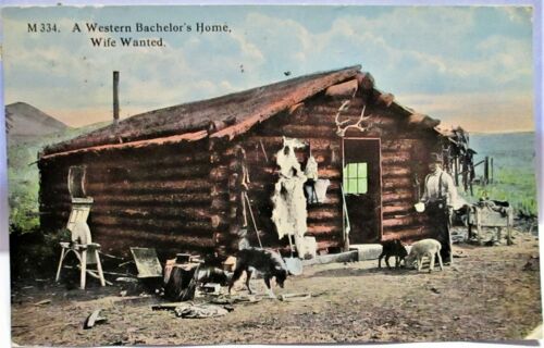 Title (ebay affiliate link): 1908 POSTCARD A WESTERN BACHELOR''S HOME, WIFE WANTED - LOG CABIN