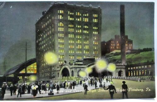 Title (ebay affiliate link): 1910 POSTCARD UNION STATION & CENTRAL HIGH SCHOOL AT NIGHT,PITTSBURG PA