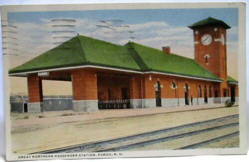 Title (ebay affiliate link): 1916 POSTCARD GREAT NORTHERN PASSENGER STATION FARGO ND, RAILROAD DEPOT