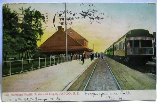 Title (ebay affiliate link): 1907 POSTCARD NORTHERN PACIFIC TRAIN & DEPOT FARGO ND, RAILROAD