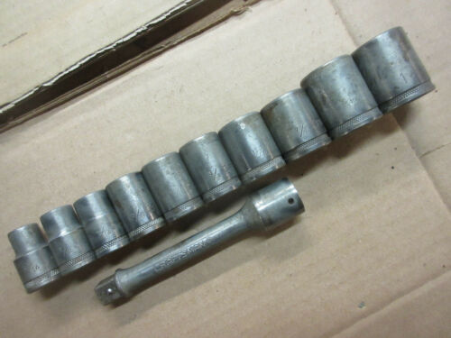 vintage early craftsman circle u 1/2" drive socket set 7/16" thru 1" plomb old