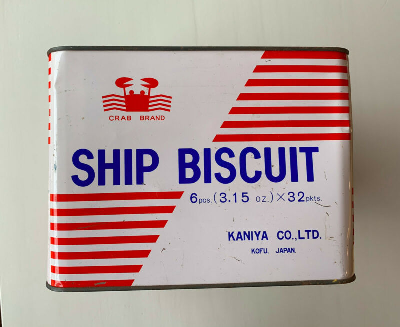 Vintage Ship Biscuit Metal Tin Crab Brand Kofu Japan