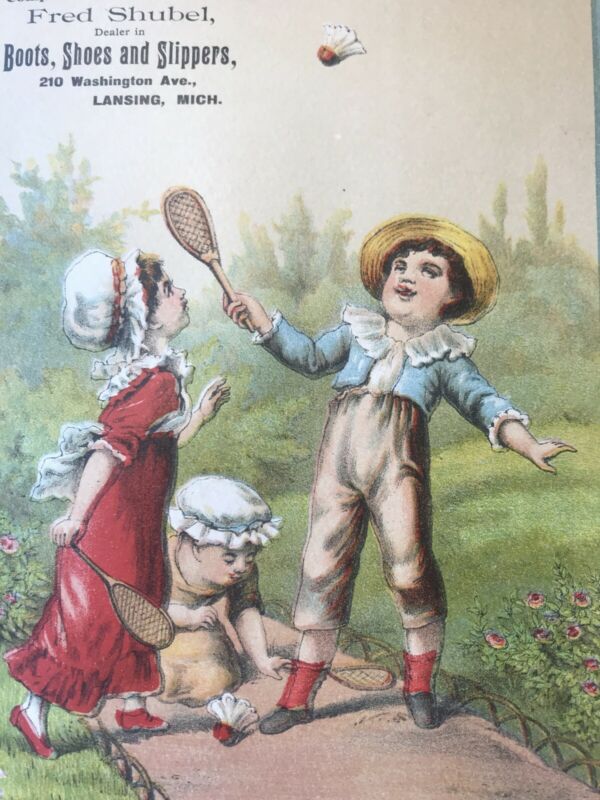 Vintage Victorian Trading Card Lansing Michigan Fred Shubel Boot Shoe Badminton