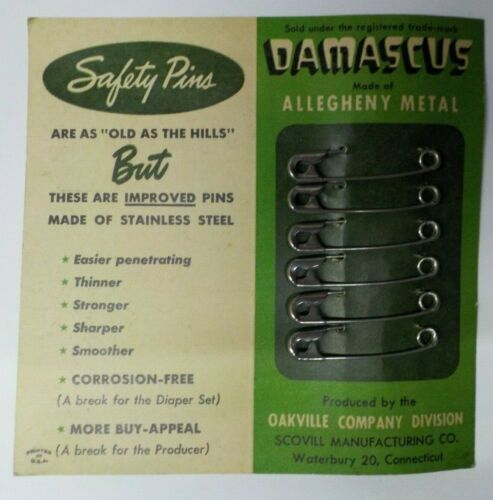 Vintage Advertising Allegheny Ludlum Pittsburgh, Pa. Damascus Safety Pins