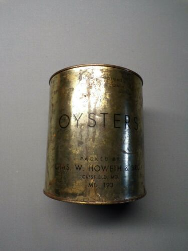 Title (ebay affiliate link): Vintage 1 gallon oysters tin can Chas W. Howeth & Bro Crisfield, MD