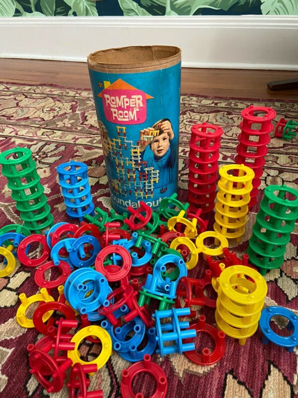 Title (ebay affiliate link): Romper Room Roundabouts 1970 Plastic Building Toys ~ Cannister Set 242 ~