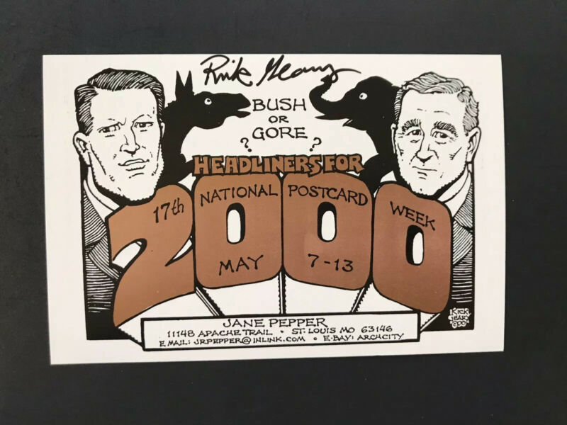 Title (ebay affiliate link): ARTIST SIGNED RICK GEARY POSTCARD "HEADLINERS FOR 2000" BUSH OR GORE, POLITICAL