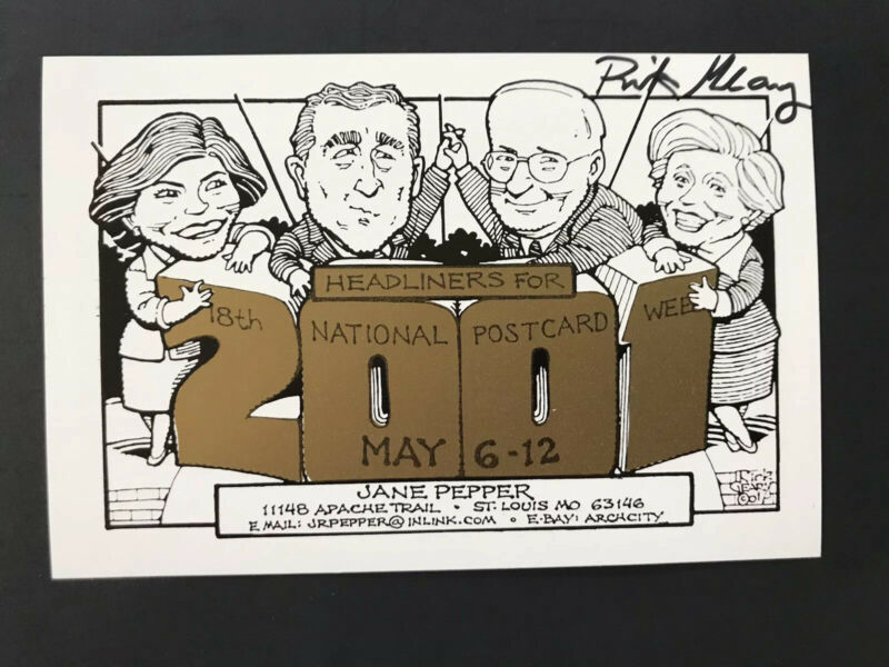 ARTIST SIGNED RICK GEARY POSTCARD "HEADLINERS FOR 2001" GEORGE BUSH, DICK CHENEY