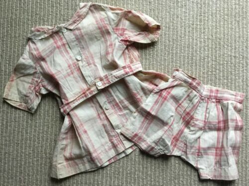 Antique Primitive Handmade Cotton Baby Girl 2 Piece Outfit Dress - Pink & White