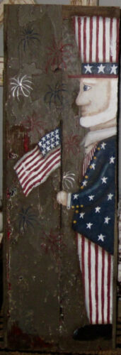 Title (ebay affiliate link): *~*PRIMITIVE*~* HP FOLK ART PRIM UNCLE SAM *~* AMERICANA *~* RECLAIMED WOOD