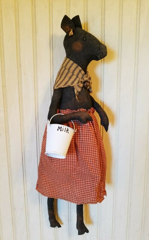 Title (ebay affiliate link): Primitive Grungy Mrs. Bovine Black Cow Doll & Her Milk Pail