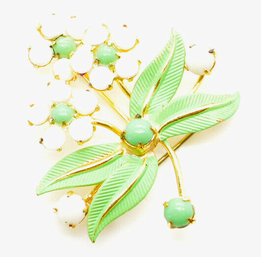 Title (ebay affiliate link): Signed AUSTRIA Vintage Brooch Pin Rhinestone Prong Set Milk Glass Enamel