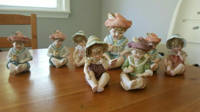 Vintage Piano Babies Boy & Girl Bisque Porcelain Figurines Lot