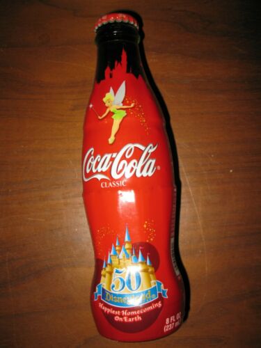 Title (ebay affiliate link): DISNEYLAND 50TH ANNIVERSARY COCA COLA COKE FULL BOTTLE TINKERBELL 2005 MINT