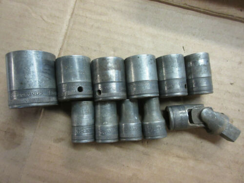10 vintage early Snap-On 1/2" drive sockets & universal joint, swivel