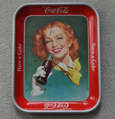 Title (ebay affiliate link): Vintage Original Coca-Cola Tray Red Haired Girl with Yellow Scarf 1948