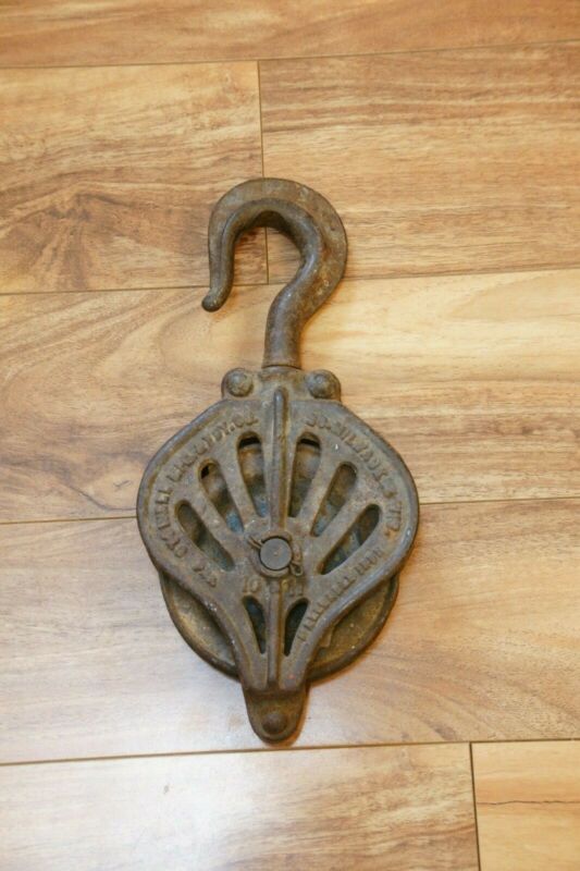 Title (ebay affiliate link): ANTIQUE PULLEY 1885 Stowell Mdg. Size 10, 11 cast iron Single Wheel Rope Pulley