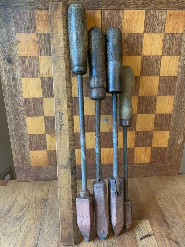 Vintage Antique Copper Soldering Irons With Wood Handles Blacksmith, Lot Of 4