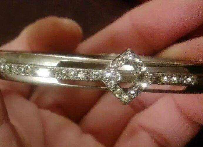 Title (ebay affiliate link): Antique Art Deco Rhodium Plate & Clear Paste Stone Bangle Bracelet Slide Clasp