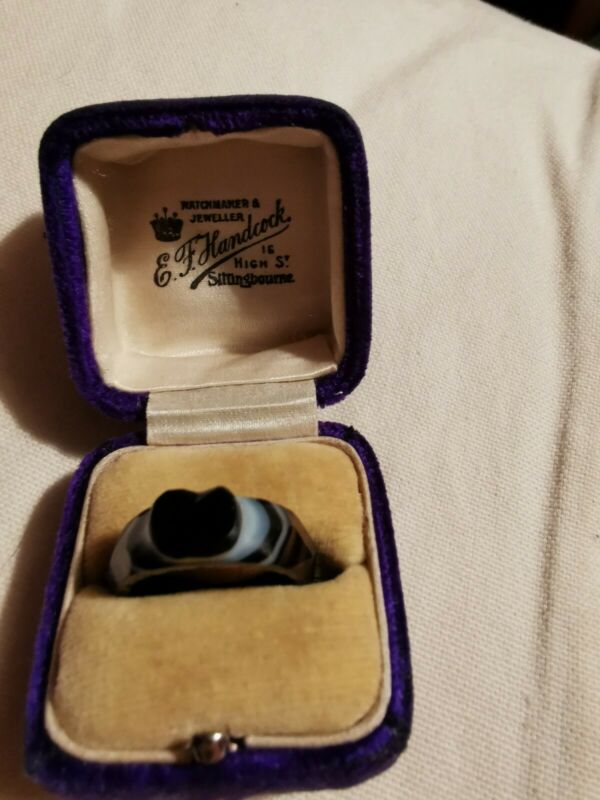 ANTIQUE CARVED SOLID AGATE RING