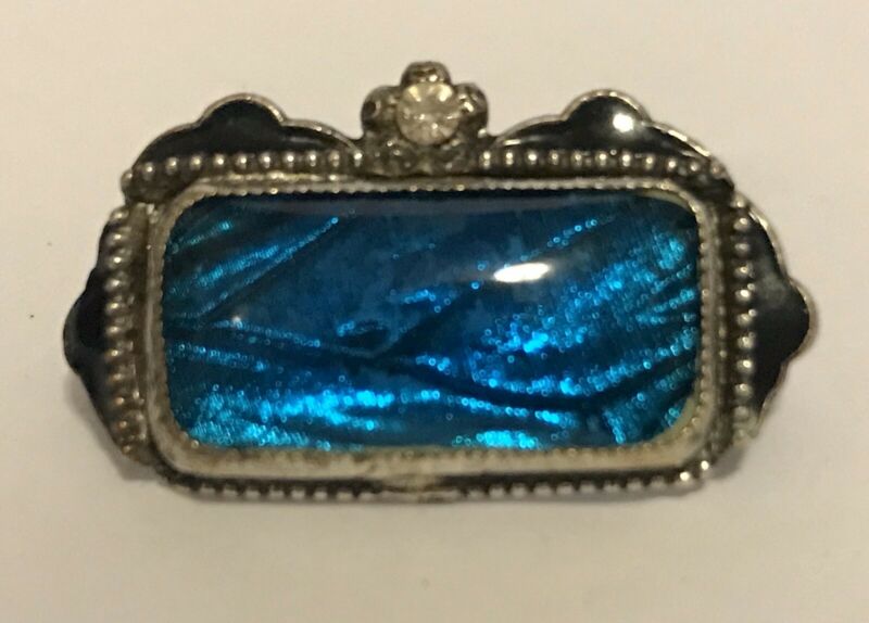 Title (ebay affiliate link): Antique Silver Enamel And Crystal Iridescent Morpho Butterfly Wing Pin Blue
