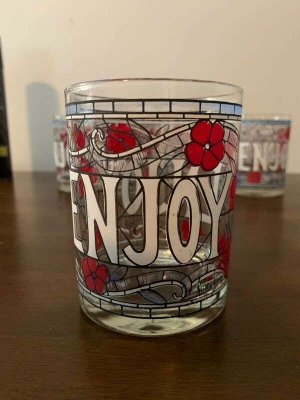 Vintage Tiffany style Stained Enjoy Drinking Glasses