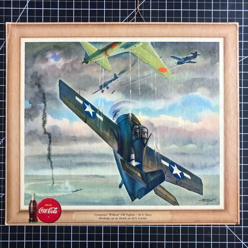 Title (ebay affiliate link): Coca Cola Vintage 1943 World War II Airplane Cardboard Hanger F4F Wildcat
