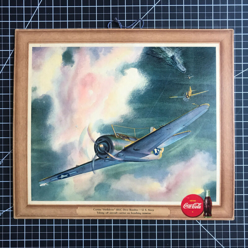 Title (ebay affiliate link): Coca Cola Vintage 1943 World War II Airplane Cardboard Hanger SB2C Helldiver
