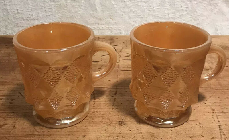 Title (ebay affiliate link): 2 Vintage Fire King Orange Kimberly Diamond pattern Mug Cup Milk Glass