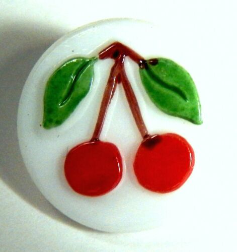 Title (ebay affiliate link): ADORABLE 1940''S MILK GLASS CHILD''S BUTTON w/COLORFUL "CHERRIES"