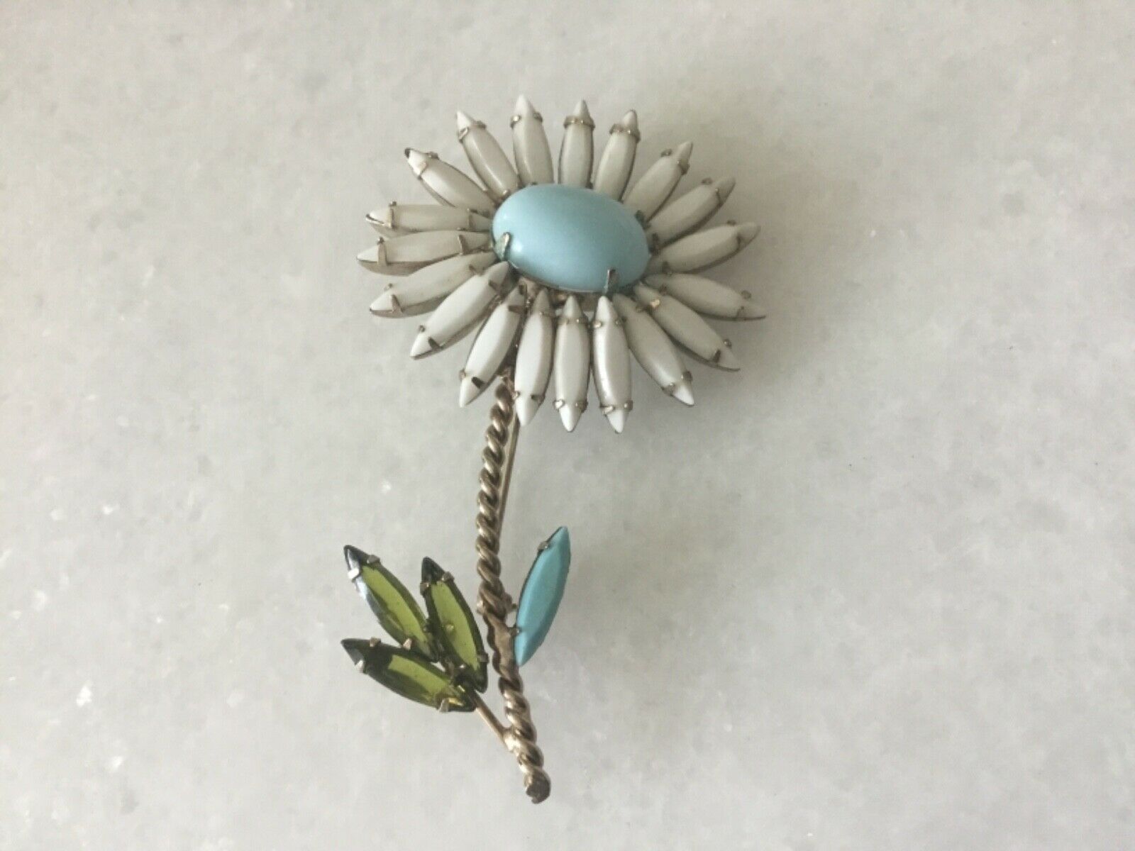 Title (ebay affiliate link): VINTAGE AUTHENTIC LARGE MILK GLASS & CRYSTAL DASIY BROOCH PIN MUST SEE NO RES